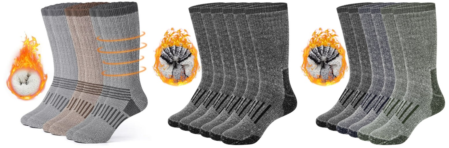 3 Pairs Thermal Wool Crew Hiking Socks